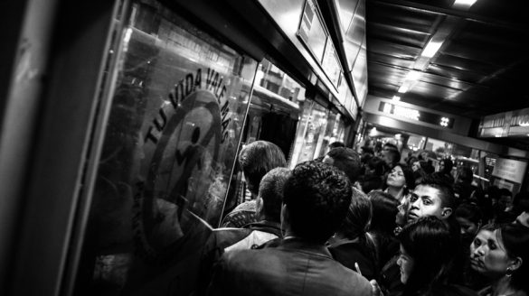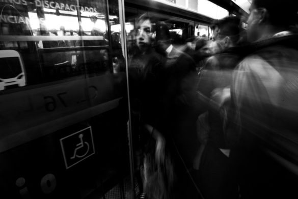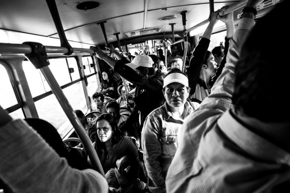 Bogotá comprimida: En la ciudad de Bogotá cada día, miles de personas entran a un sistema de transporte apretado, ineficiente y tristemente cotidiano. Durante dos o más horas, restringidas entre el vidrio, el acero y la multitud, se dirigen a cumplir toda clase de quehaceres. En esta serie de imágenes se busca dar visibilidad a las incontables masas humanas, todos ellas tratando de sostener esta locura evidente a su manera y sin manual.