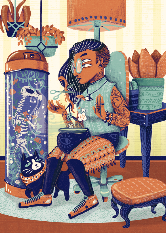 Aura Milena mejor conocida como Aura de Papel es una ilustradora y diseñadora gráfica Bogotana, egresada de Los Libertadores. Una apasionada del medio visual, ama aprender cosas nuevas, explorar técnicas, conocer las experiencias de las personas que admira y dibujar, le encantan los cómics, las animaciones, tocar el ukelele, la papelería, una buena comida casera y una conversación interesante. Tiene la firme convicción de que una imagen siempre cuenta una historia, por tanto las manos son herramientas creadoras de relatos para el mundo.