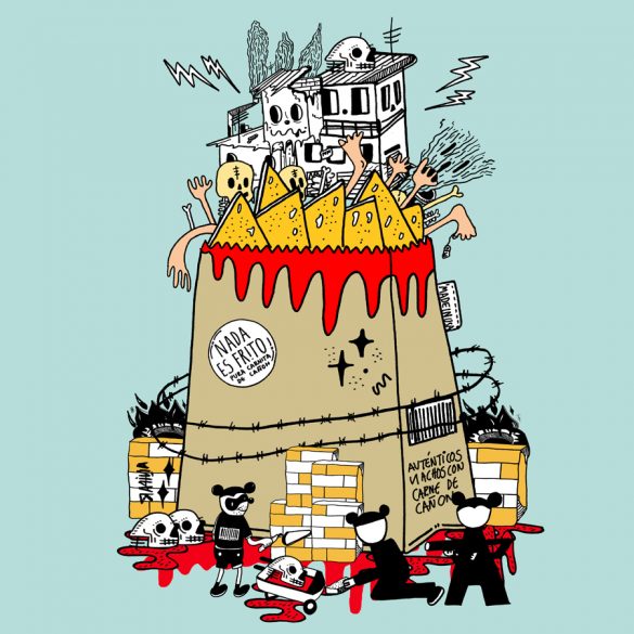 Rapiña es una fotógrafa e ilustradora, esta artista tiene una exploración amplia con la imagen incluyendo en sus trabajos la intervención gráfica en fotografías y material visual impreso, el collage, el dibujo y la caligrafía. En su obra se recrean de manera irónica los espacios y personajes absurdos que habitan las ciudades desde una mirada fresca y burlona.