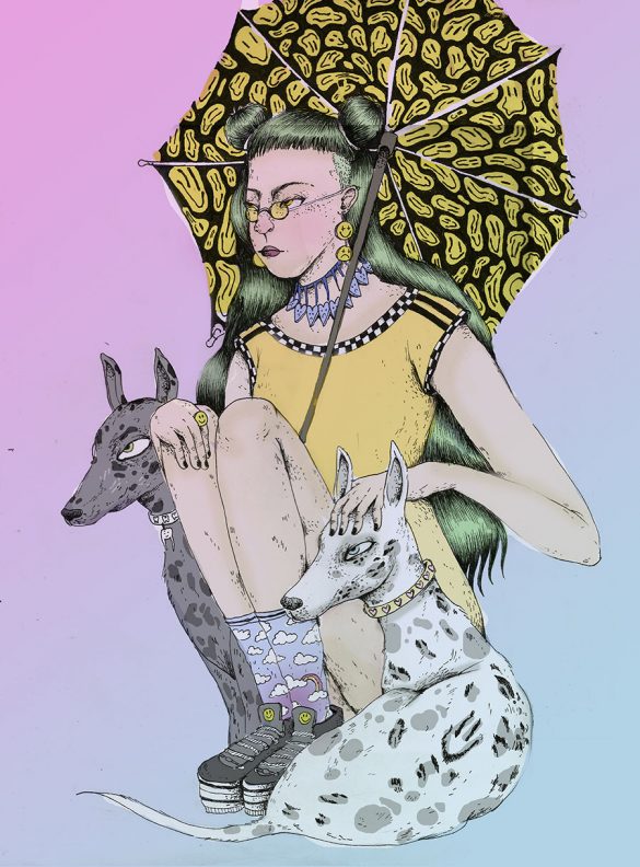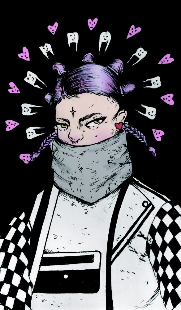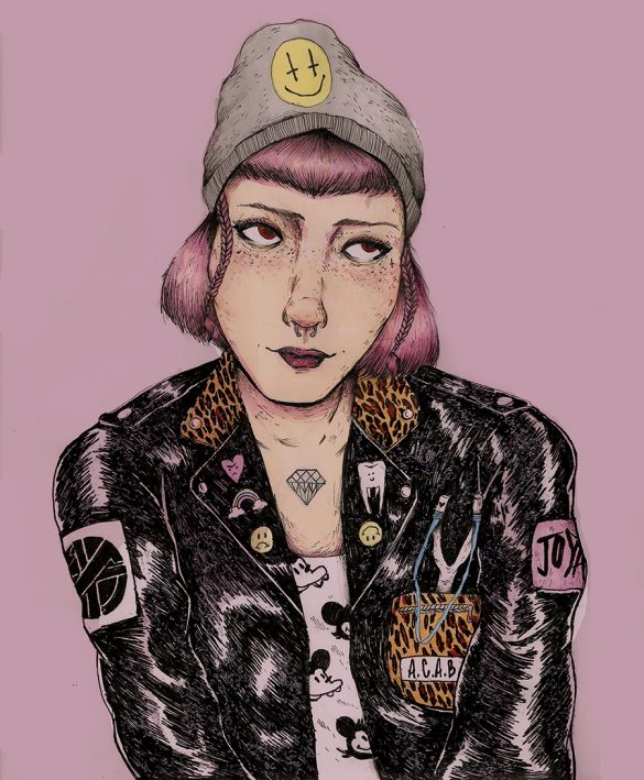 Darares es una ilustradora hace más 5 años y pintando algunos muros hace tres años. Le gusta mucho todo lo que tiene que ver con la creación de personajes femeninos y darles cierto toque “rudo” con peinados y vestimentas extrañas… algo con una onda también muy noventera y punkera en algunas ocaciones. Es amante de la ilustración análoga, pero viene experimentando con la combinación de esta junto con lo digital desde el año pasado, ha descubierto que se pueden lograr cosas muy interesantes al unir estas dos técnicas, pero nunca dejará de dibujar a mano. En la calle ha hecho algunas cosas, como muros, pega de carteles y stickers…. aunque hace un rato que no sale a dejar nada por ahí, pero pronto estará trabajando en más cosas para el publico que le sigue, es algo que realmente le interesa, trabajar su arte en la calle ofrecerle a la gente algo de sí, de la mejor forma que se hacer. También le gusta mucho todo lo relacionado con la serigrafía y el fanzine, ha tenido experiencia haciendo algunos trabajos y es una de las técnicas más lindas que ha descubierto gracias a personas que le han enseñado mucho sobre el tema.
