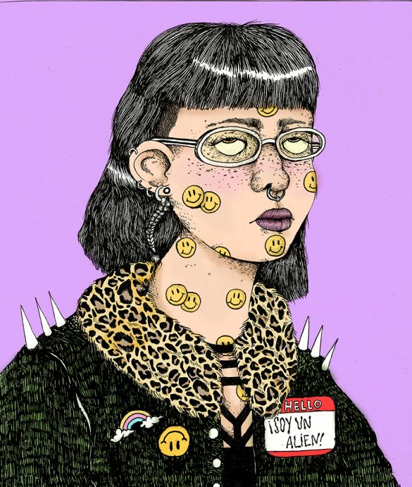Darares es una ilustradora hace más 5 años y pintando algunos muros hace tres años. Le gusta mucho todo lo que tiene que ver con la creación de personajes femeninos y darles cierto toque “rudo” con peinados y vestimentas extrañas… algo con una onda también muy noventera y punkera en algunas ocaciones. Es amante de la ilustración análoga, pero viene experimentando con la combinación de esta junto con lo digital desde el año pasado, ha descubierto que se pueden lograr cosas muy interesantes al unir estas dos técnicas, pero nunca dejará de dibujar a mano. En la calle ha hecho algunas cosas, como muros, pega de carteles y stickers…. aunque hace un rato que no sale a dejar nada por ahí, pero pronto estará trabajando en más cosas para el publico que le sigue, es algo que realmente le interesa, trabajar su arte en la calle ofrecerle a la gente algo de sí, de la mejor forma que se hacer. También le gusta mucho todo lo relacionado con la serigrafía y el fanzine, ha tenido experiencia haciendo algunos trabajos y es una de las técnicas más lindas que ha descubierto gracias a personas que le han enseñado mucho sobre el tema.