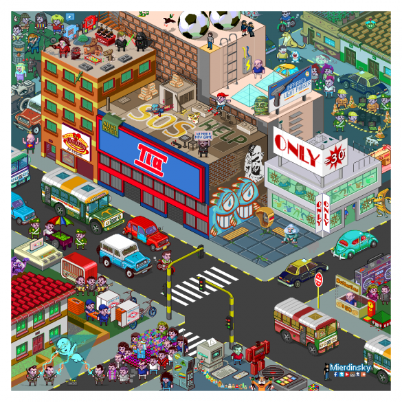 Mierdinsky es un ilustrador Bogotáno criado en la localidad de Rafael Uribe. En el año 2007 encontró una técnica que le deslumbró y trajo buenos recuerdos de su infancia llama a Pixelart, Inicialmente trabajaba con MSpaint o con aplicaciones para dispositivos móviles. Dedica la mayor parte de sus obras a plasmar situaciones, artículos o personajes representativos de las décadas de los 80s y 90s.
